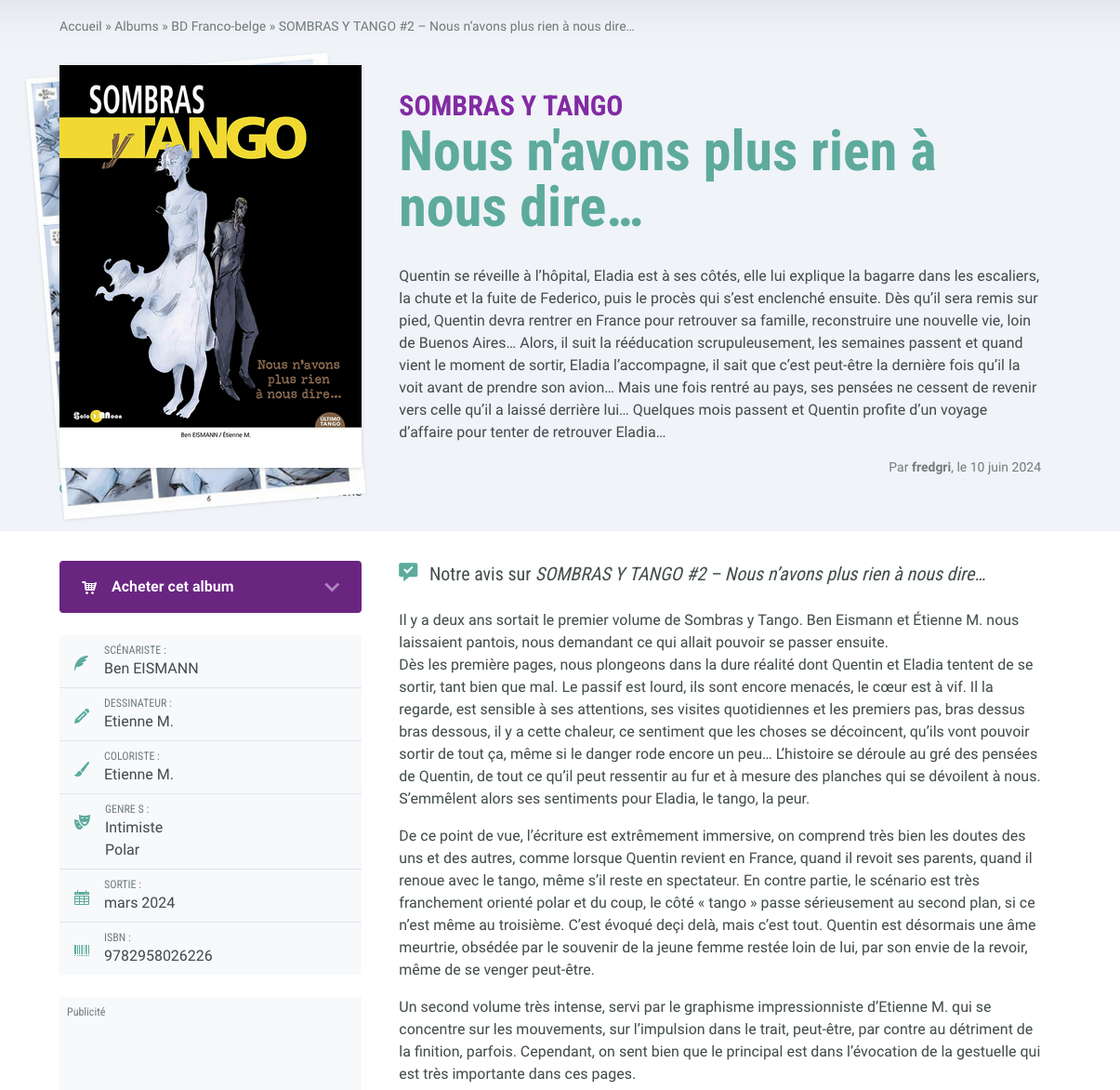 Voici une super chronique sur le tome 2 de "Sombras y Tango"