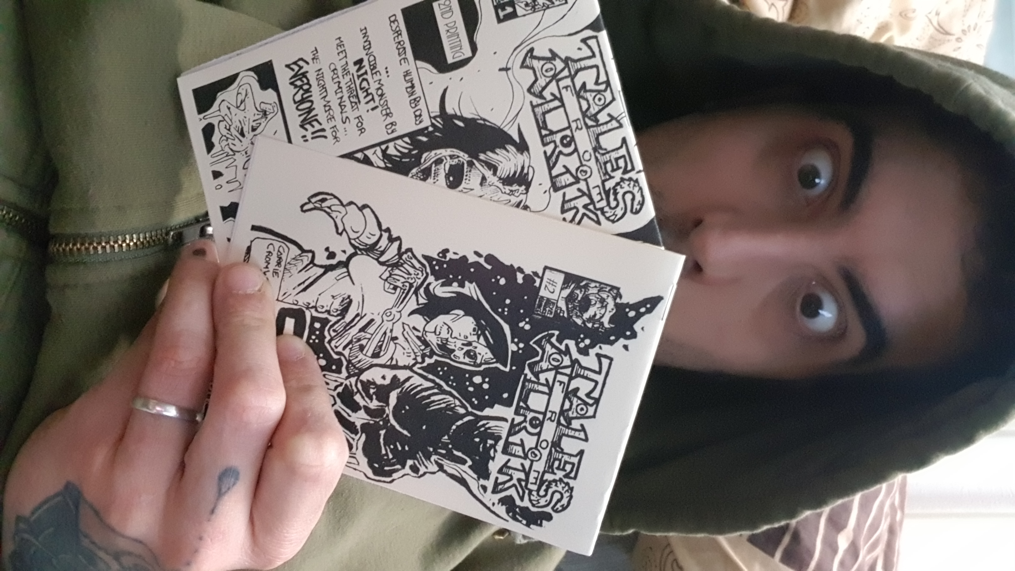 La maquette, le lettrage, le découpage... Jusqu'à l'agrafage final, à l'exception d'une étape de nettoyage sur Photoshop, chacune des étapes de création d'un numéro de Tales From Alrik est fait à la main, renouant avec le coté débrouille des dirty comics (qui, eux, s'imprimaient sur des rotatives clandestines et dont les saisies se comptaient non pas en nombre d'exemplaires mais en tonnes!)