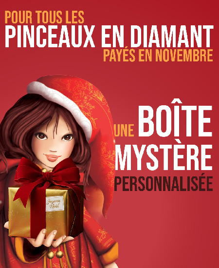 - Pinceaux en diamant (~35 €) : la surprise est une vraie surprise ! Noël oblige, ce seront des cadeaux personnalisés que nous allons vous concocter. Alors, prêts à être gâtés ? 🎁