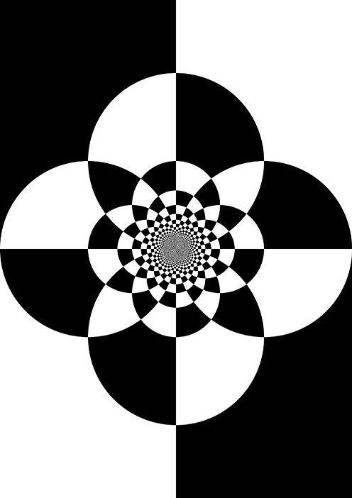 Un échiquier infini inversé ! Et grâce à la magie de l'inversion, absolument toutes les cases de l'échiquier sont présentes dans cette image. Les quatre zones en coin représentent les quatre cases centrales et s'étendent jusqu'à l'infini au delà des limites de l'image.