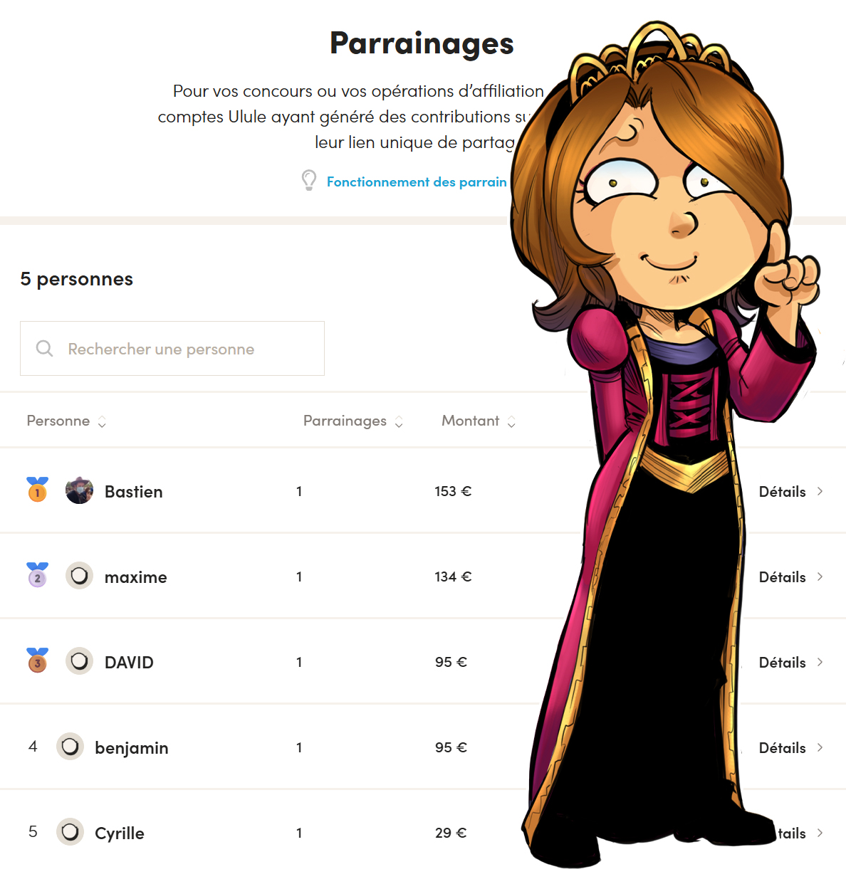 Voici comment ça se présente sur notre panel d'administration. Plus il y a de participations via votre lien de parrainage, plus vous grimpez au classement. Ainsi, un cercle vertueux se forme. Le projet est amélioré, de nouveaux loots s'ajoutent pour tout le monde au fur et à mesure que les Hauts Faits sont atteints, l'aventure Noob peut continuer un peu plus longtemps à l'échelle transmédia si le budget grimpe, et vous avez une chance de remporter l'un des super butins détaillés plus haut.