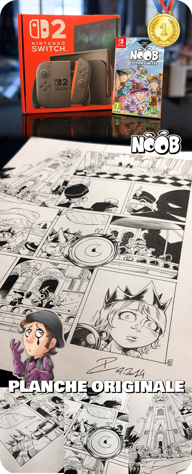1/ Nintendo Switch 2 + Jeu vidéo Noob : Les Sans-Factions édition limitée + Une planche originale de la bande dessinée Noob. (valeur + de 600 euros)