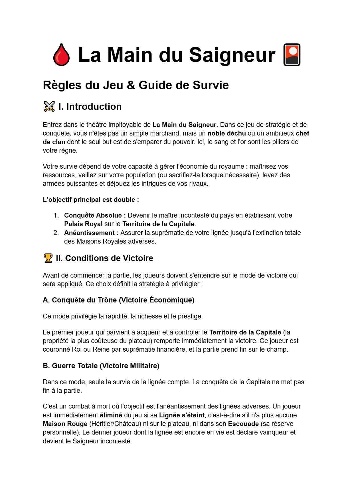 - La Main du Saigneur : Peaufiner les règles, les mécaniques (notamment les Routes Commerciales, les Services Publics et les Conflits) et tester le jeu.