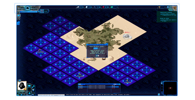 Dans SpaceOrigin, vous comprendrez vite que l'exploration est très importante ! Chaque planète possédera une surface qui lui est propre, et vous pourrez envoyer des Drones Explorateurs pour la découvrir, et pour localiser les bases de vos adversaires. Vous pourrez également vendre les coordonnées ainsi trouvées aux autres joueurs, ou bien les partager avec les membres de votre alliance, pour attaquer vos cibles à plusieurs, par exemple. Et attention ! Il faudra régulièrement mettre vos informations à jour !