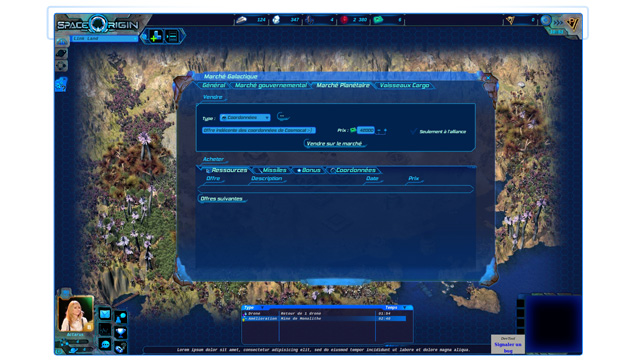 Et ce n'est pas tout ! Vous pourrez aussi passer des petites annonces sur le Marché Planétaire et revendre des marchandises de toute sorte ! Vous pourrez même dénoncer vos ennemis, voire même trahir vos amis, en vendant leurs coordonnées et ainsi faire d'une pierre lunaire deux coups ! Des joueurs qui savent faire preuve d'imagination et d'humour, ce sera ça aussi, l'ambiance SpaceOrigin !